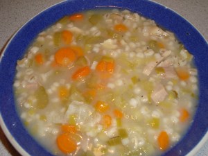 - Substitute 1 cup dried orzo for the barley. Don’t add at the beginning, but after about 45 minutes. Cook until tender. Then add the turkey.