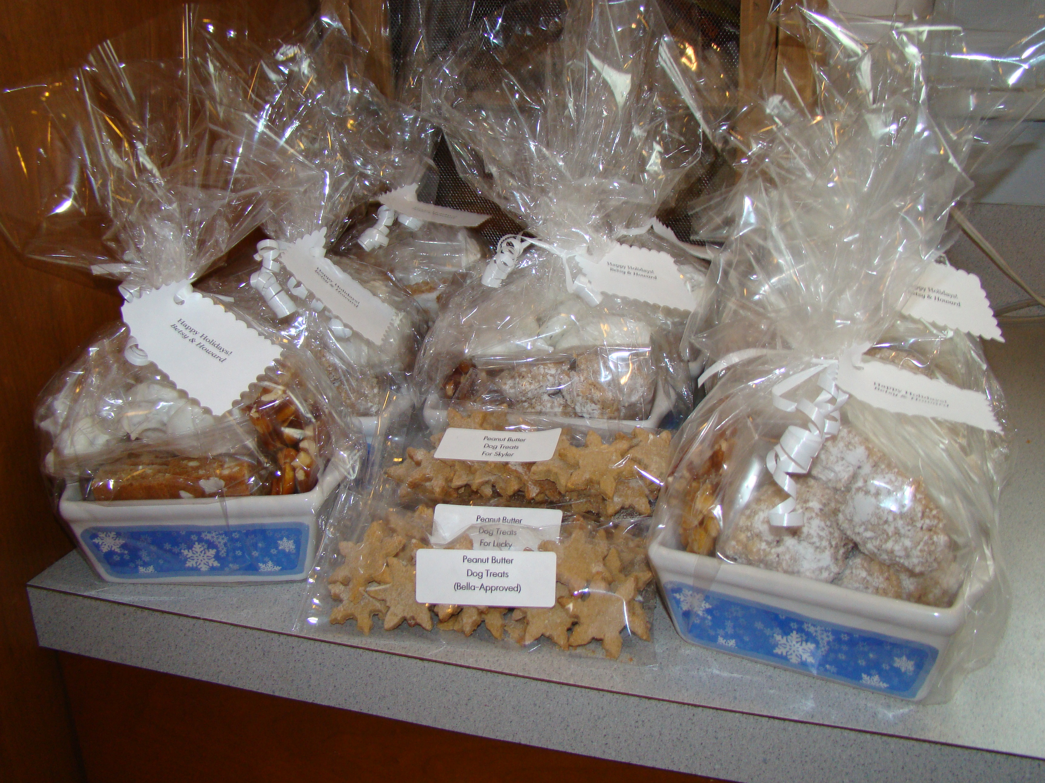 Last year, my sister Jennifer gave me a dog biscuit cookbook. So, as a final touch, I made peanut butter dog biscuits, in snowflake shapes to celebrate the season. I added a pack of these for my friends with dogs. They had the Bella seal of approval!