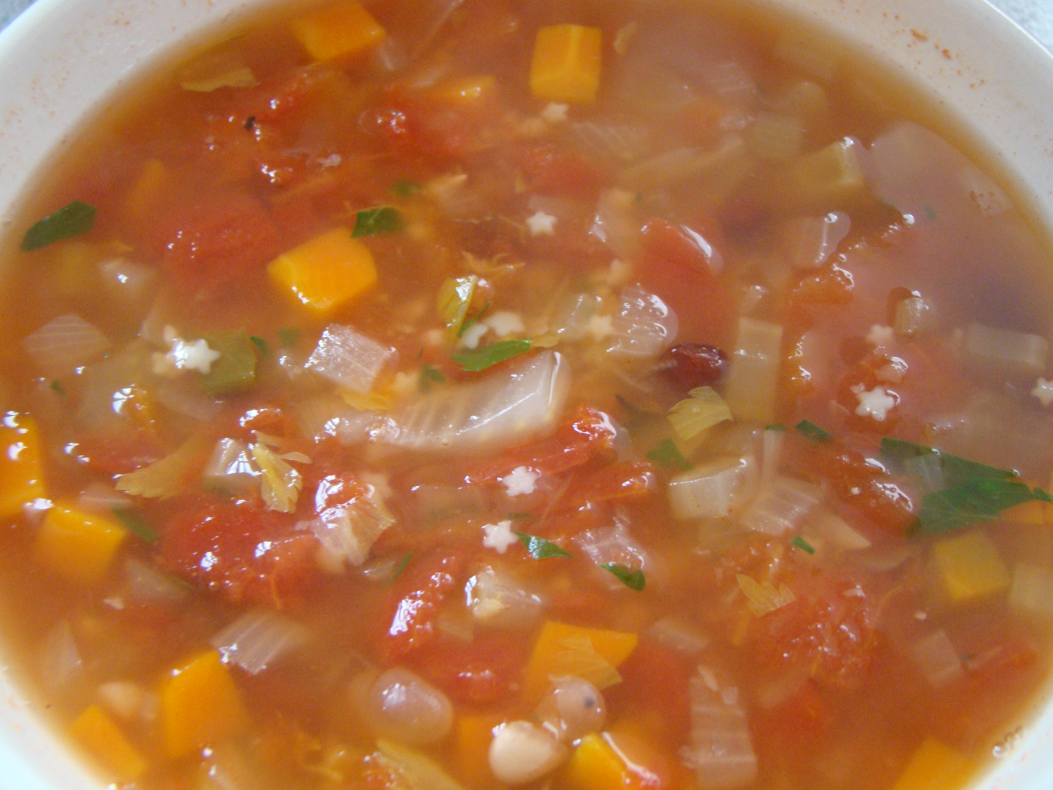 With the refrigerator was empty of leftovers, so I decided to make a hearty soup for lunches during the upcoming week. I still had some not-so-good ribs from earlier in the week, so, initially, I planned to make a soup that would invite the addition of the leftover rib meat. I settled on a pasta e fagioli, where the meat would stand in for the chicken and ham. In the end, we finished the ribs for lunch yesterday, so I ended up with a vegetarian soup instead.