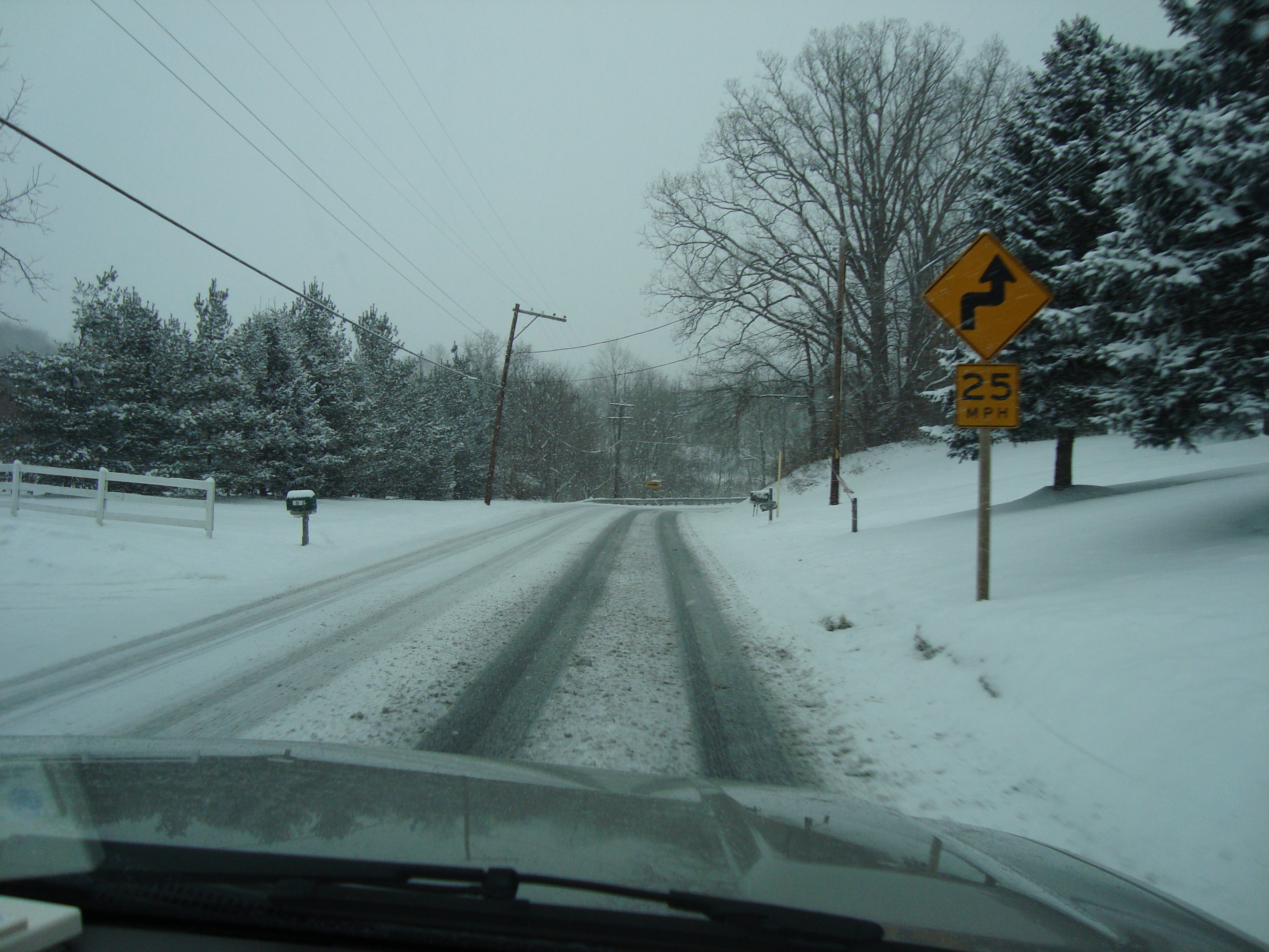 Being intrepid New Englanders and having travelled south specifically for the party, we didn’t want to abandon our plans. Fortunately, Danny lent us their 4-wheel drive vehicle for the 50 mile journey from Frederick to Baltimore. It was a grueling trip (see picture). Howard drove. It took almost 2 hours, more than twice as long as it should have. The roads weren’t plowed, not even the highways, and the other drivers weren’t predictable. There were plenty of cars abandoned at the side of the road. Traffic was treacherous and slow. It was stressful.