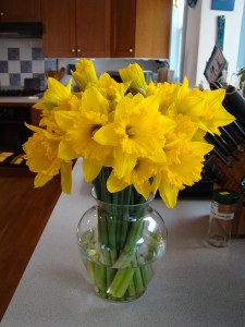 It was over 50 degrees yesterday! It finally feels like winter is on its way out. I didn’t wear my winter coat or my boots at all. My snowdrops are blooming. The skunks are out. I bought bunches of daffodils at Trader Joe’s. It makes me happy!