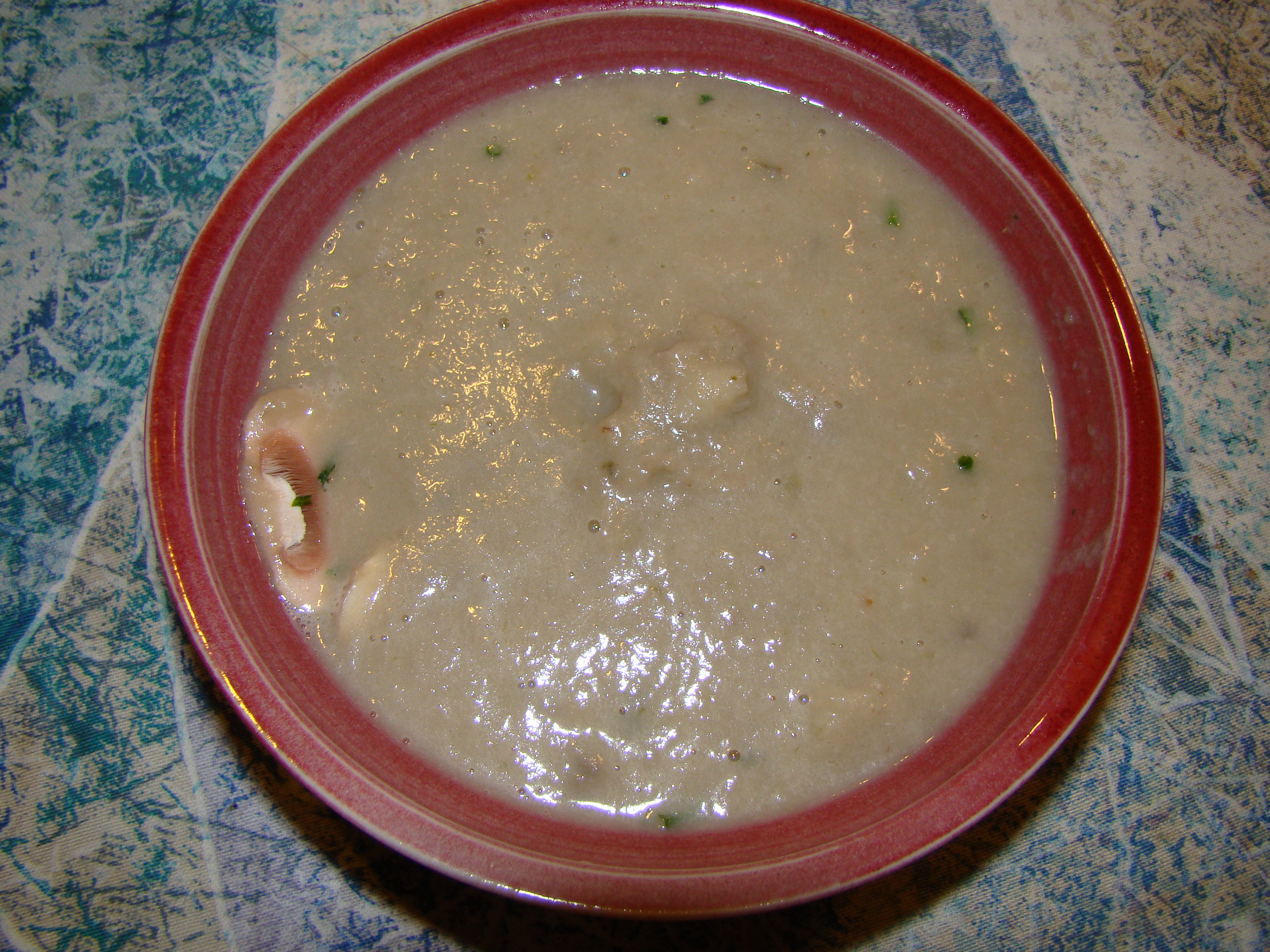 3. We had the soup with meatloaf, but I think it would go great with sandwiches. I’m not thrilled with raw mushrooms either, but I sliced them very thin and only used a few slices for garnish. I hardly noticed them in the soup, except for the texture.