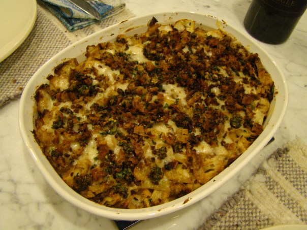 Cabbage and Potato Gratin with Mustard Bread Crumbs