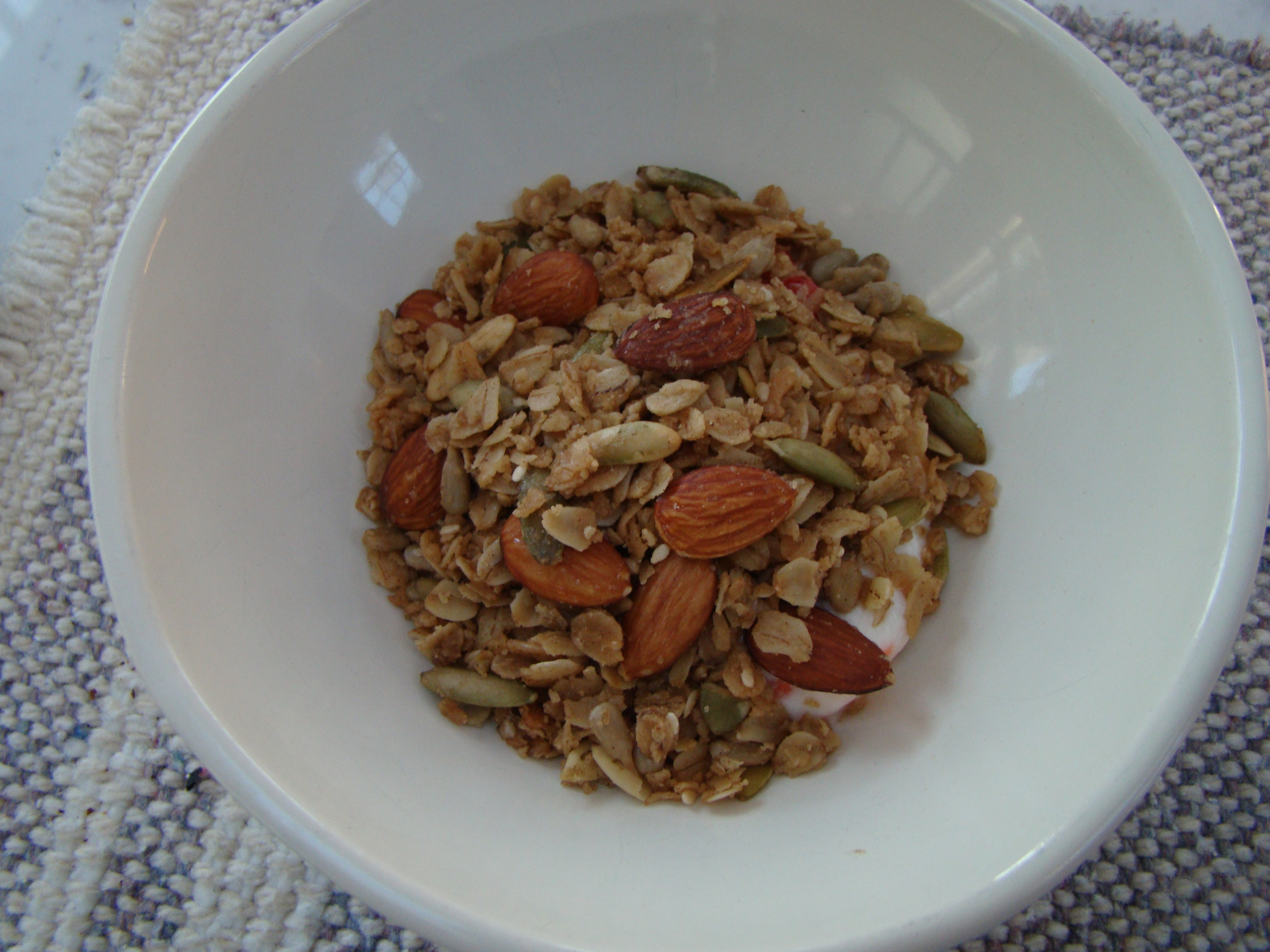 On weekdays, breakfast is simple. The menu varies by mood, but is usually the same for weeks or months at a time. Then, feeling a rut coming on, I change it. I always have fresh fruit: half a grapefruit this time of year, switching to berries or melon in season. I also have a small bowl of plain yogurt with some homemade fruit jam stirred in. For substance, I have toast with cheese (rye bread is my favorite) or a bowl of cereal. Last week, I felt a granola phase coming on.