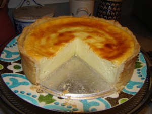 Dessert is on the menu this week for French Fridays with Dorie. The recipe is an intruiging goat cheese cake called tourteau de chevre. It wasn’t a cheesecake, in the classic New York deli way. It wasn’t a classic cake either. Even though the eggy, creamy (though creamless) goat cheese filling was poured into an unbaked pastry crust lining a springform pan, it wasn’t really a tart either. It was completely unique.