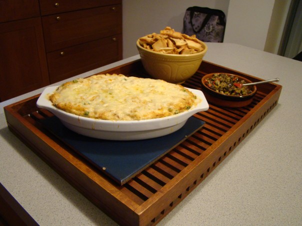 My dip was popular with the book group. I served it with Stacy’s pita chips, but it would be good on any sturdy crackers. It would probably be good on vegetables too. This made more than we needed for half a dozen ladies, so making a half recipe for a smaller group would be a good idea.