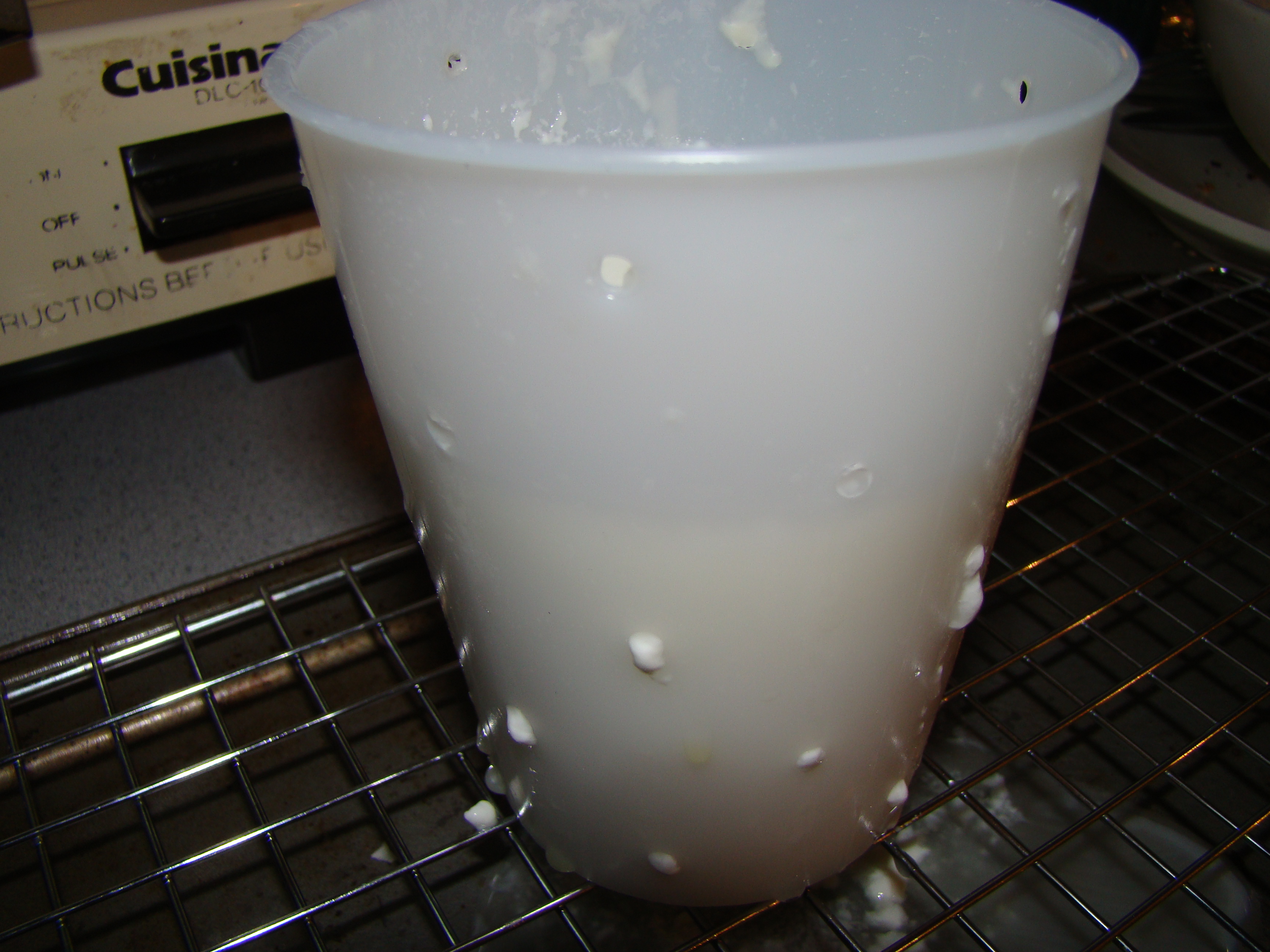 I had a little trouble with the molded cheese. It wasn’t draining so I couldn’t unmold it. I realize that home cheesemakers make this at room temperature in Europe, but, being American, I started to panic when the cheese was just out in the kitchen for over 24 hours. I ended up transferring the draining curds to the cheesecloth and just draining it for more chevre. I’m not going to try the aging thing this time around.
