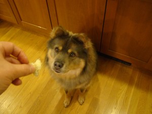 Different dogs define high-value treats differently. Most dogs go for liver treats, or bully sticks, or rawhide bones. My dog Bella likes all of those, but what she goes nuts for, what she’ll do anything you ask for, is a little bite of challah. Who would have known?
