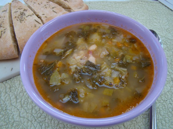 I’d been craving a bean soup with pancetta. I made stock while I was sleeping, and then put together a hearty pot of soup in the morning to be ready in time for lunch. The soup was chock full of vegetables and beans, and really hit the spot.