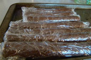 My yield was nothing like Dorie’s. She said the recipe would make 36 cookies. Granted, my rolls were skinnier. I shaped my dough into more than two rolls, not just because they were thinner, but because I find shorter rolls easier to handle. I baked about half the dough and got over 60 cookies. I plan to put the other rolls in the freezer for later.