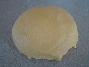 This week’s recipe is for a Pizza Rustica from Nick Malgieri. This pizza isn’t at all like the pizza that comes from your neighborhood pizzeria. It’s more of an Italianesque quiche. The pastry is a pasta frolla, which resembles a sweet shortbread crust. The filling is a savory blend of ricotta, mozzarella, and Romano cheeses with a hefty dose of shredded prosciutto. The tart gets an elegant touch with a simple crisscross lattice top.