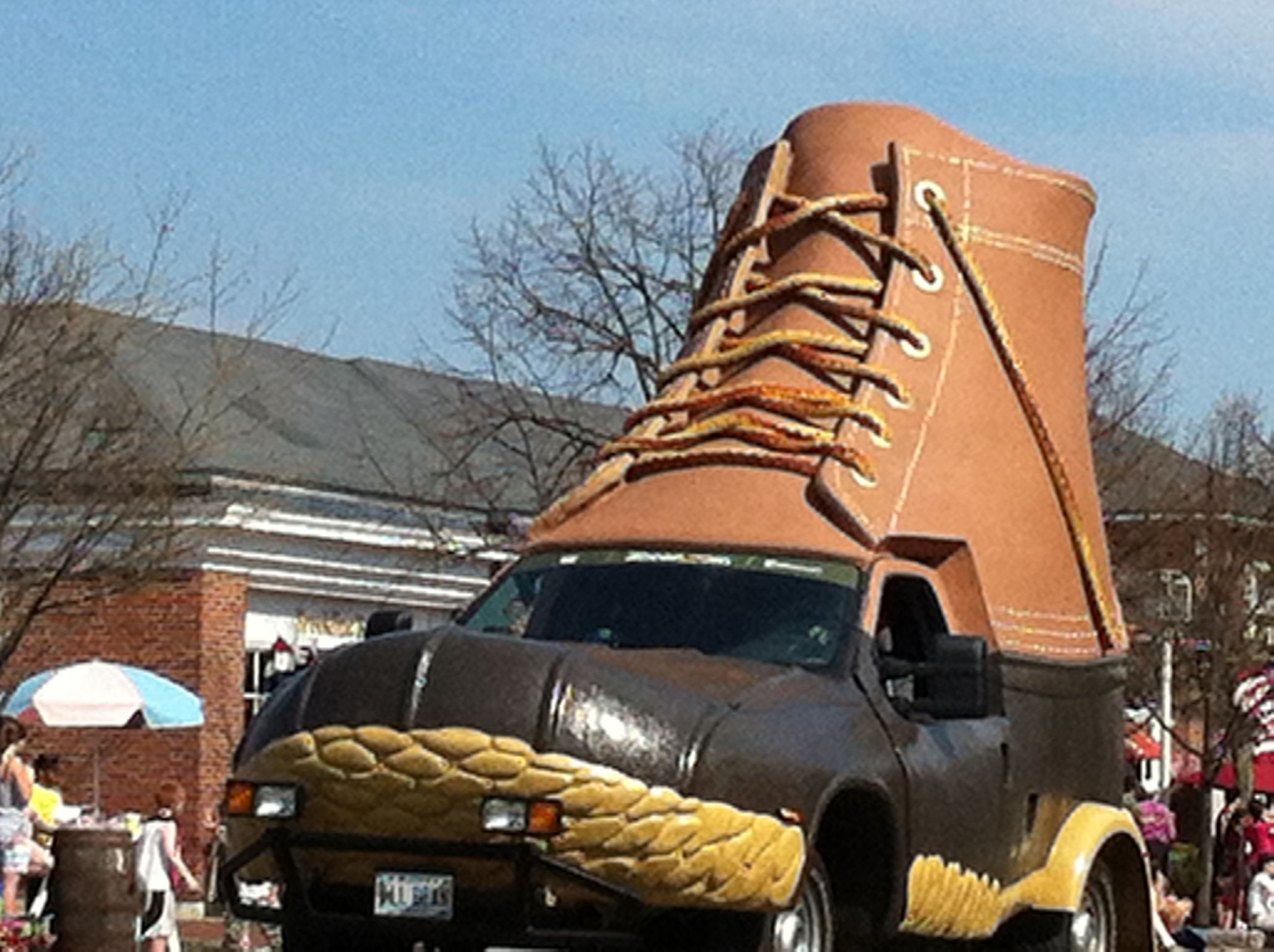 There are lots of Minutemen, the high school marching band, local officials, and civic groups marching. There are a few floats and civic award winners riding in top-down convertibles. To celebrate last year’s Stanley Cup win, even the head coach of the Boston Bruins, Claude Julien, and his family, who live here in town, were part of the parade. The crowd is enthusiastic and it’s fun to watch. The two highlights of this year’s parade were the L.L. Bean Bootmobile and a group of impressive military equipment from the Massachusetts Military History Museum.