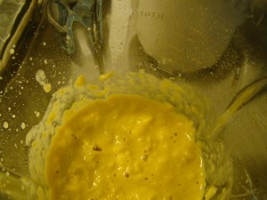I’ll be the first to admit that I very wrong about this one! Fresh corn from the south is available in stores, so I couldn’t do the canned corn. I wasn’t sure how much to substitute, but two ears, cooked, and then stripped of their kernels, yielded just under two cups, which seemed about the same as a one pound can. There weren’t many ingredients, just the corn, eggs, a bit of flour, and salt.