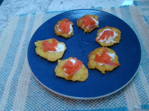 Even better were the leftovers, reheated and topped with a dollop of crème fraîche and a piece of smoked salmon, the way that Jean-Georges Vongerichten served these for Dorie.