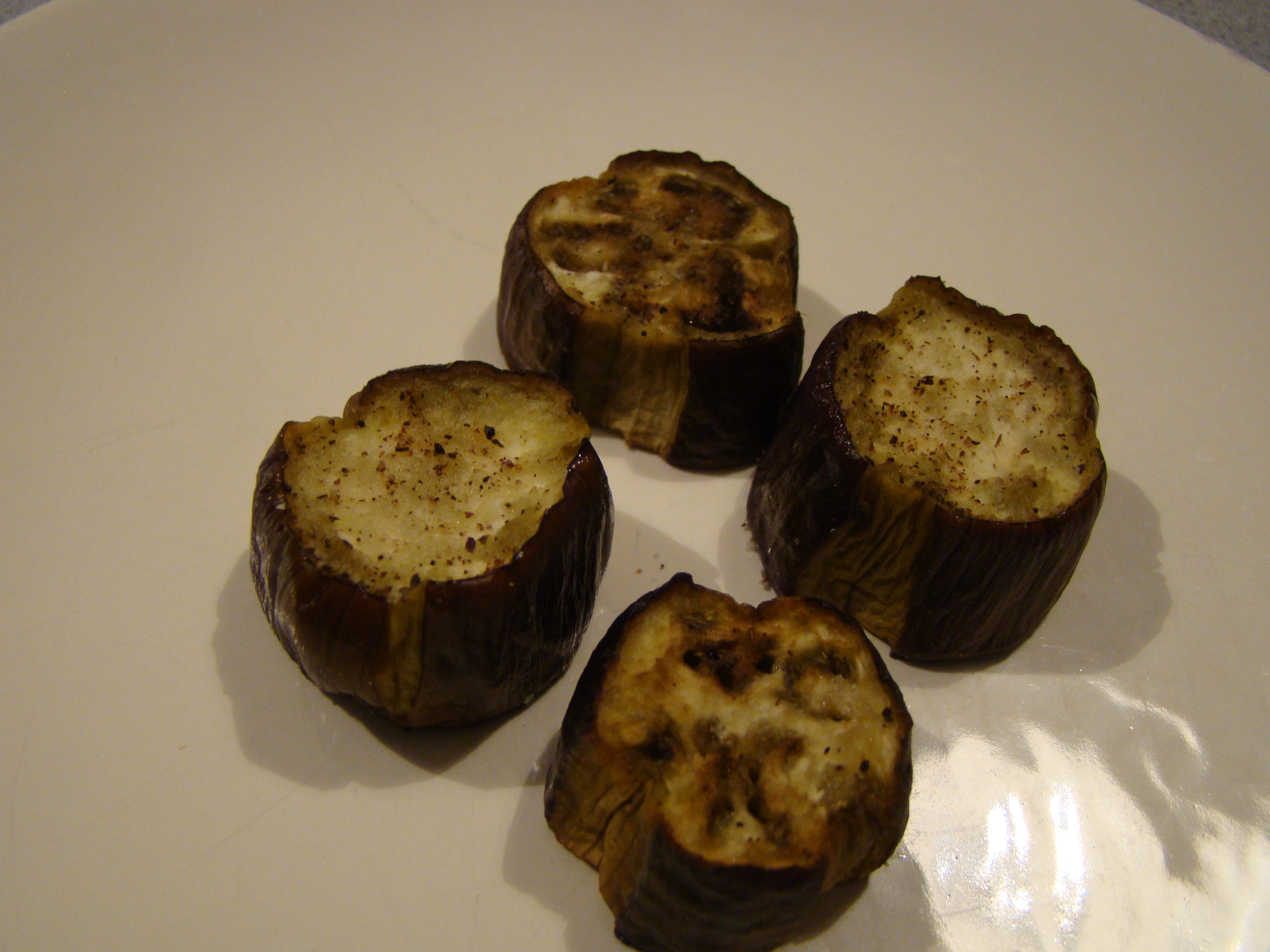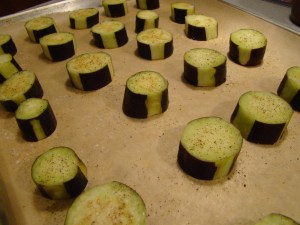 All these ingredient hiccups resulted in total procrastination. I woke up this morning and, alas, still hadn’t made the recipe. I was going out for lunch and needed dinner to be extra quick tonight, plus Howard won’t eat eggplant, so he wasn’t about to try it. Still in my pajamas, I headed downstairs to roast my eggplant slices, make the tomato salsa, and slice the cucumbers. I would at least taste it, so I could participate with the other bloggers.