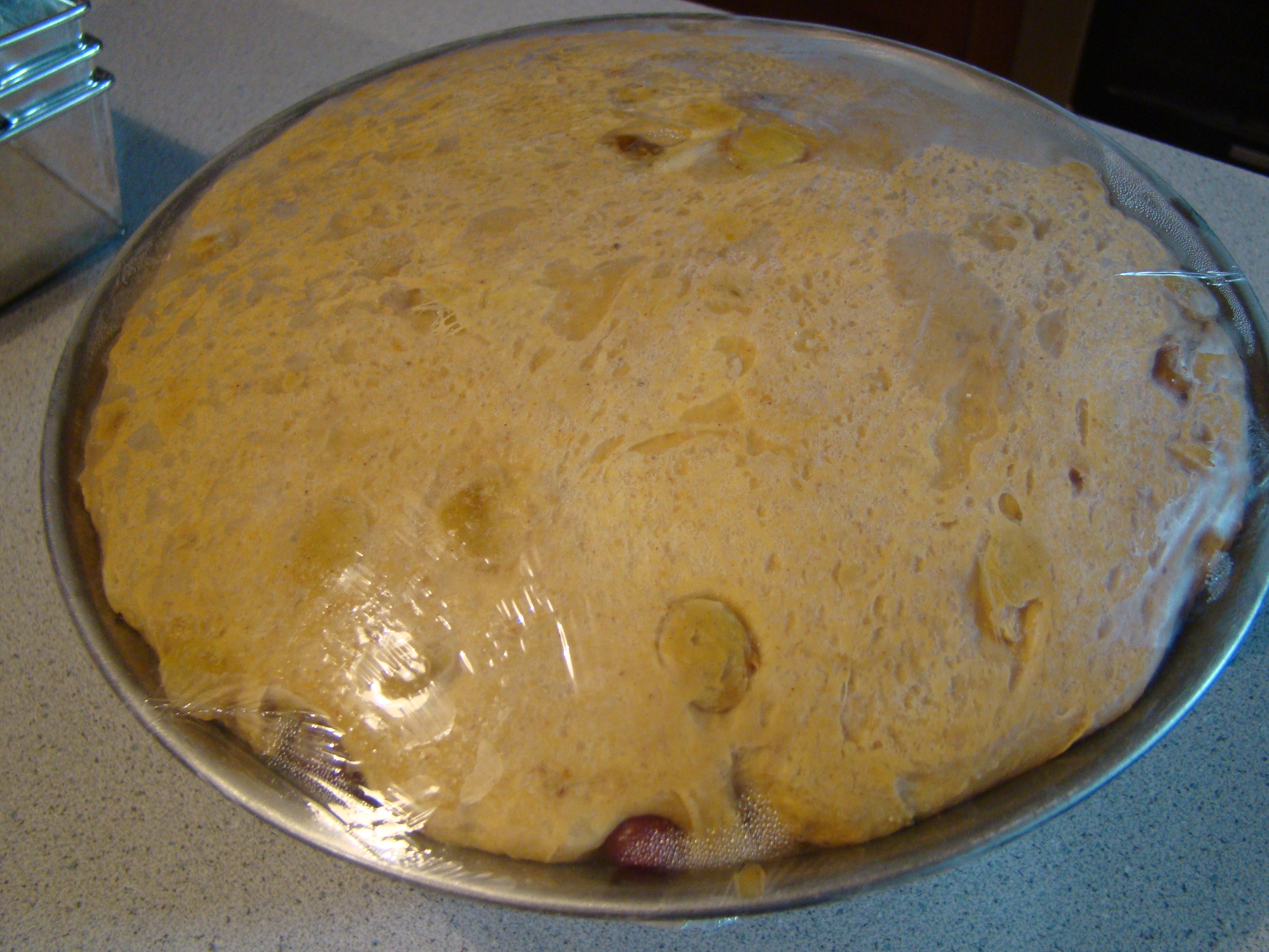 I was a little confused about the overnight chill. When I’ve chilled dough overnight before, it’s been for an overnight rise, but that didn’t seem to be the case in this recipe. I placed the dough in a bowl just slightly larger than the deflated dough, wrapping tight in plastic. It had a little room to grow, and when I checked for bedtime, it was pushing against the plastic already. Hoping it wouldn’t explode, I just let it be for the night. Good thing that I didn’t use a larger bowl. Though the plastic wrap successfully held the dough in place, I’m sure it would have continued to grow, if unrestrained.
