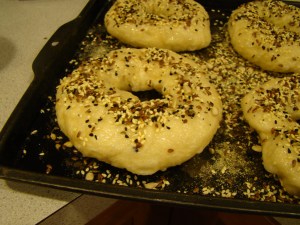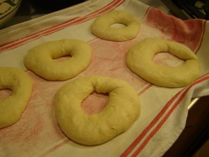 The recipe was imposing, taking up several pages to explain the steps. There was the usual mixing, kneading, and rising as for any bread, but what makes a bagel a bagel is the shape and the boiling before the baking.