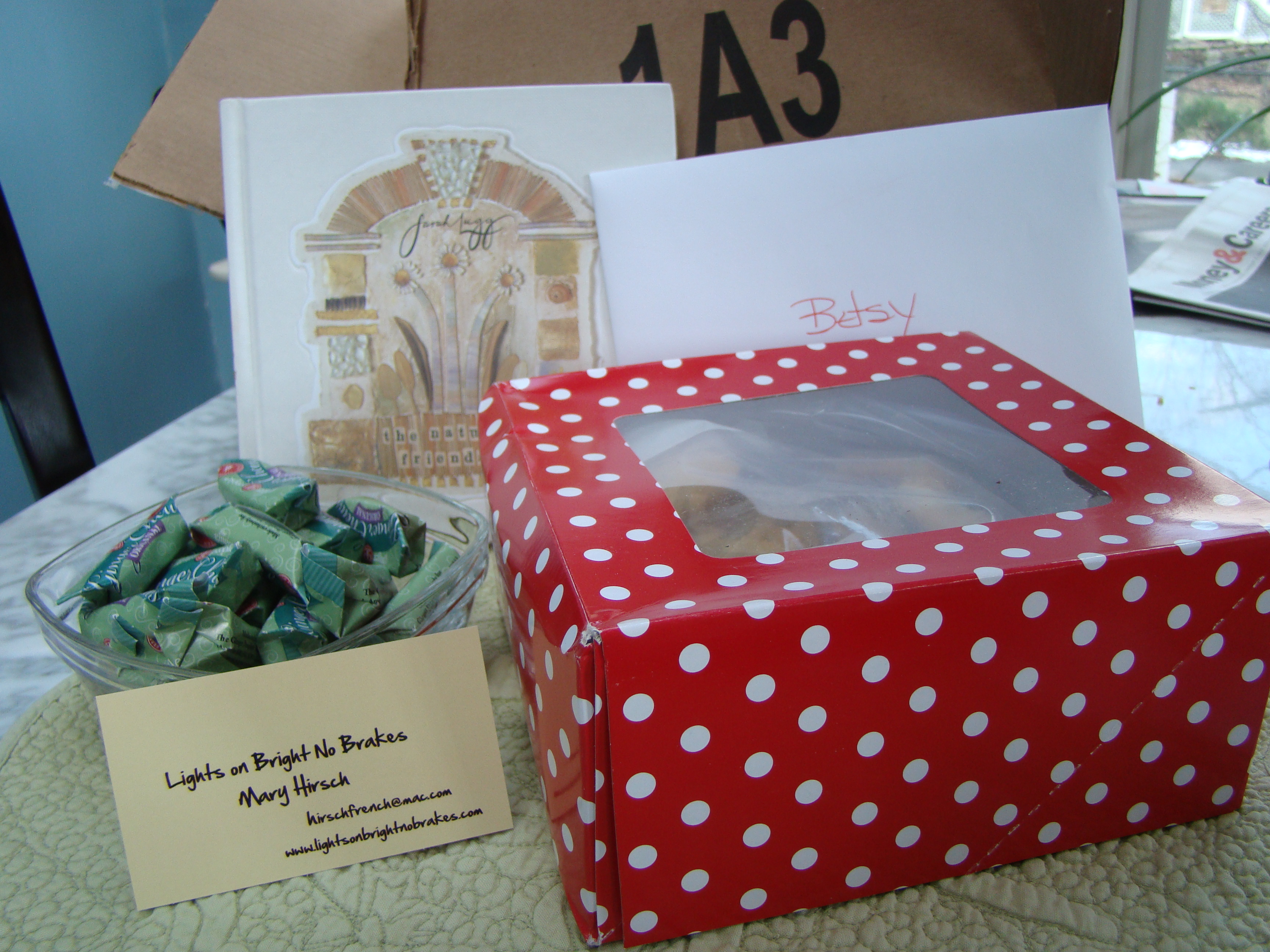 My package came from Mary at Lights On No Brakes. Mary is my fellow administrator, helping Laurie out with the French Fridays site. Over the past few months, I have come to know Mary better, so it felt extra-special to get a package from her.