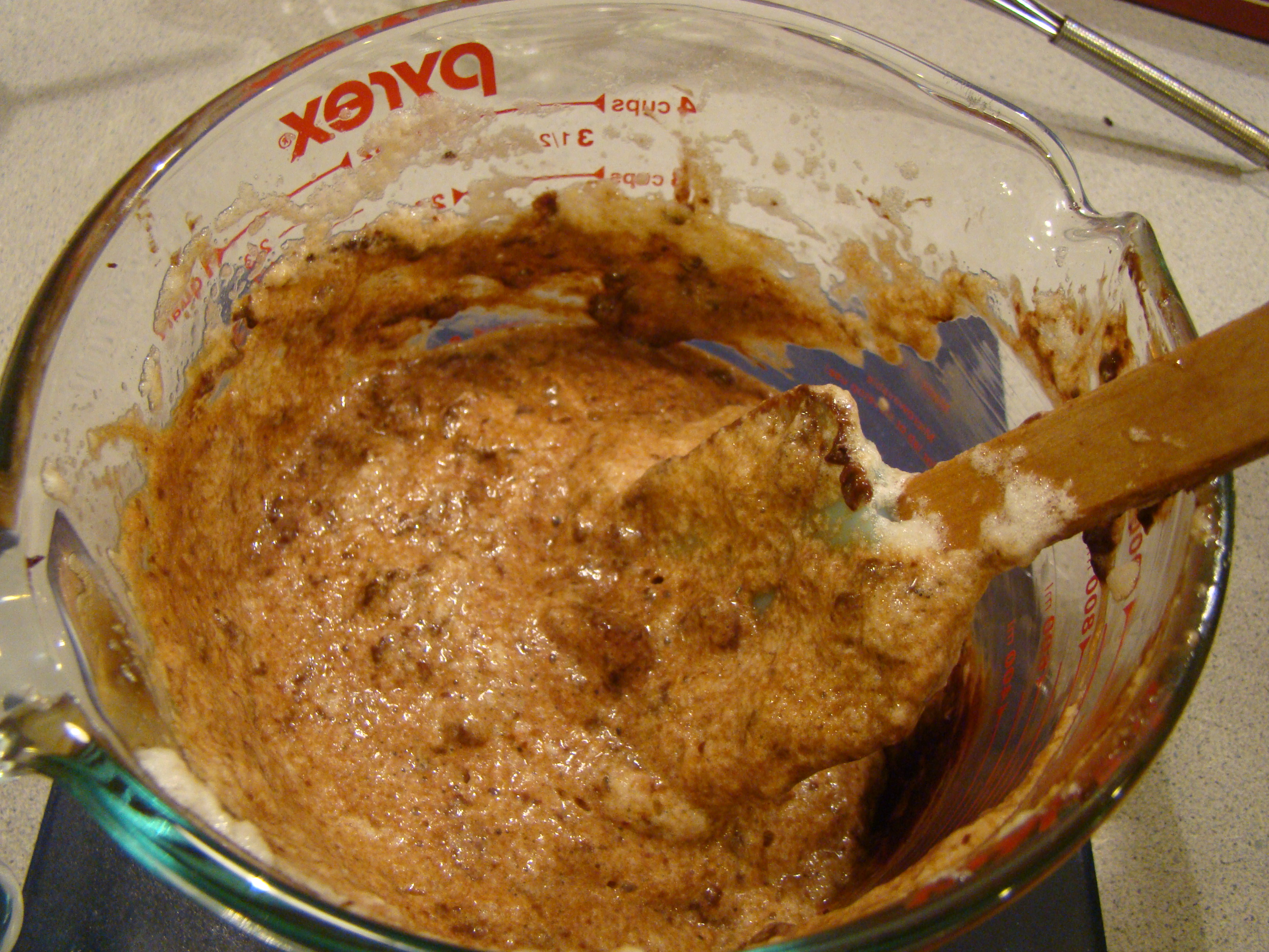 The next was whipping the egg whites until they were medium stiff. Howard loves electronic devices. In fact, he gave me my beloved KitchenAid as a gift. As I explained how to whip the egg whites, he pointed out that this was the first time he was using the machine that he bought (and recently repaired) for me.