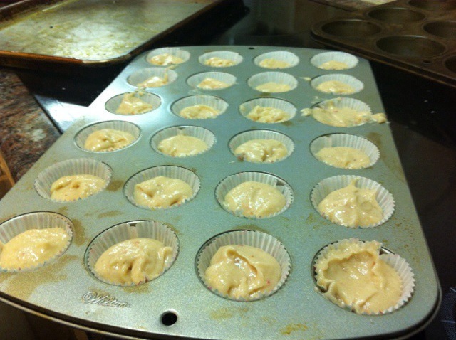 Preheat the oven to 350F. Line a mini-muffin tin (with 24 muffins) with cupcake lines and set aside.