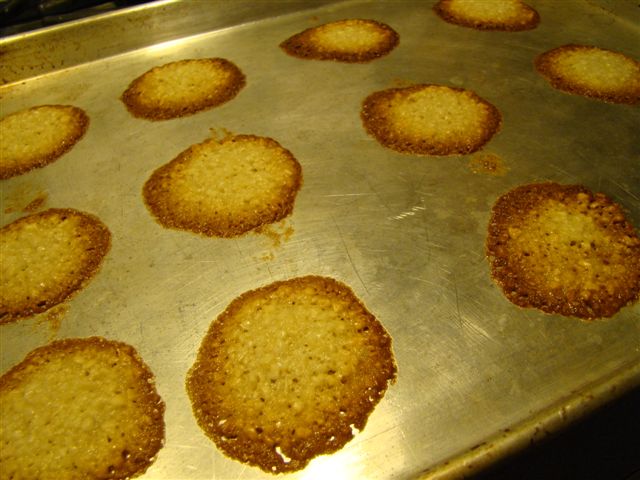 I had VERY mixed success with these cookies. I don’t know whether I was overcooking them or undercooking them. All I know is that it was a struggle to remove the cookies from the pan, a key step in the process. After I made these, I saw a photo of what they should look like. These are much more golden than mine, but mine would have burnt before they reached the same even hue.