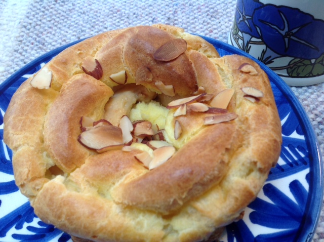 Ambivalence. Dread. Fascination. Resignation. I’ll admit to a full range of emotions about this week’s selection for French Fridays with Dorie: Paris-Brest. What is a Paris-Brest, you ask? It’s a special pastry that was created in honor of a bicycle race. How French! Every four years, the bicycle race is held between Paris and, you guessed it, Brest, a city in Brittany, in northwestern France. OK, that’s the etymology, but what is it? Reminiscent of a bicycle wheel, it’s a ring of choux pastry (the same dough as cream puffs) filled with an almondy pastry cream.