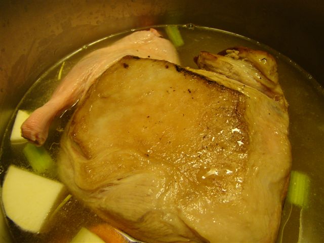 Remove the pork from the pot and let it cool to just above room temperature. DO NOT DISCARD the cooking broth. Strain the liquid.