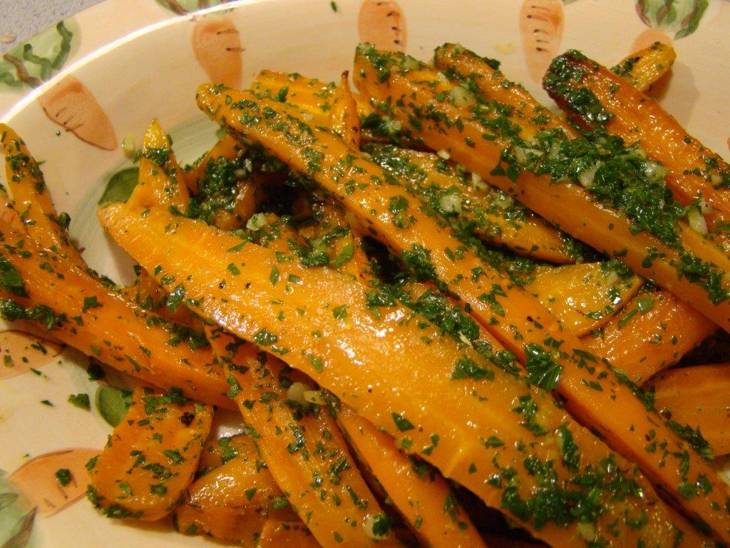 The carrots were completely different than the couscous. Young carrots (from my farm share) are roasted in butter and oil until they are tender and caramelized. The hot carrots are tossed with gremolata made from lemon zest, garlic, and a generous amount of parsley. I can’t believe that’s all there is to it. The presentation was gorgeous, so colorful! And, I had an excuse to pull out my carrot serving dish. I think this will make more appearances on my table, especially in the colder months. The carrots might not be as fresh in the winter, but the overall flavors will bring a needed ray of sunshine.