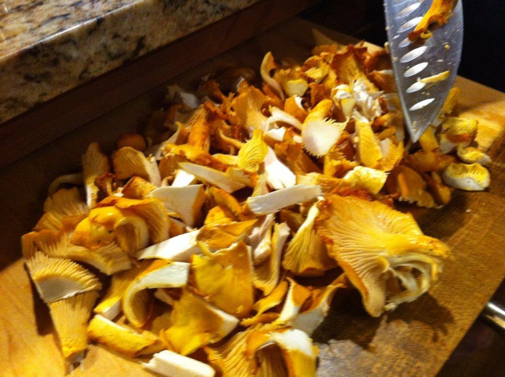 This week’s recipe for French Fridays with Dorie is actually for chanterelles with napa and nuts. Until last September, I’d never eaten chanterelle mushrooms. When I went to Seattle for IFBC last year, I visited with an old friend the day before the conference started. For dinner, her husband treated us to risotto made with chanterelles that he had foraged himself! I also sampled chanterelles during a couple of restaurant meals I had in Seattle that week.
