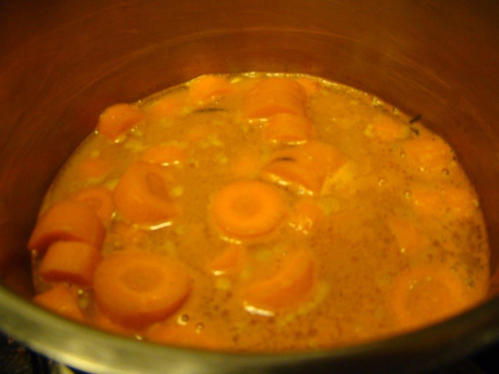 Another week of French Fridays with a recipe that I found uninspiring on the page: Monkfish and Double Carrots. I even postponed making it until Friday’s dinner. I just wasn’t sure about carrots in a carroty sauce topped with fish fillets topped with crumbled bacon.