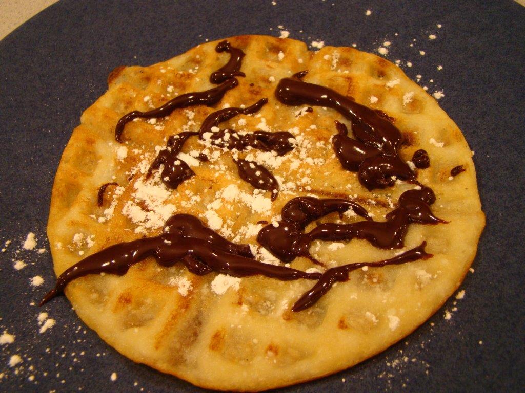 I grew up eating waffles at breakfast time. I’m not sure what the difference is between pancake and waffle batter, but my mother made them distinct by using Hungry Jack for pancakes and Bisquick for waffles. Waffles were a considered treat, I think because they are cooked one at a time, and when we had waffles, you didn’t have to wait for everyone, you just ate your waffle when it was hot off the iron. I even have memories of waffles for dinner occasionally, the same ones served at breakfast time but eaten at night.
