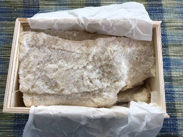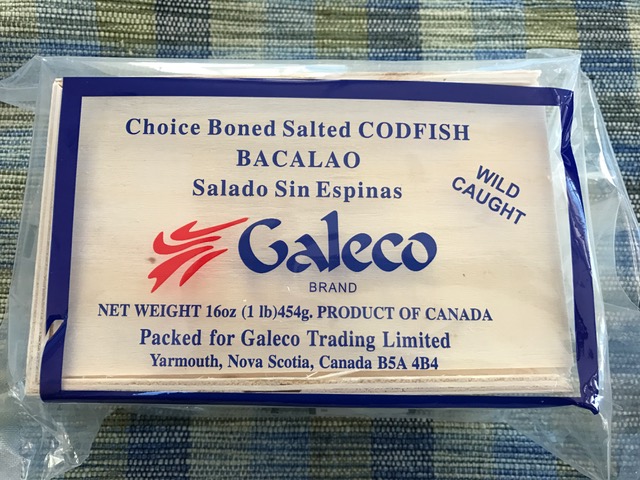 Salt cod has been around for a long time. Back in the days before refrigeration, salting was one way to preserve foods for longer storage. I first became acquainted with it when I moved to New England and noticed that a barrel of dried fish would appear in the grocery store around the holidays. Ever curious, I bought some and looked up what to do with in “The Joy of Cooking” (this was pre-Internet). Brandade, a salt cod and potato puree, was the “gateway” recipe for preparing this flavorful (from the salt) mild fish. Over the years, I’ve prepared salt cod a few times, when I saw it for sale, but it had been a while since I’ve seen it around.