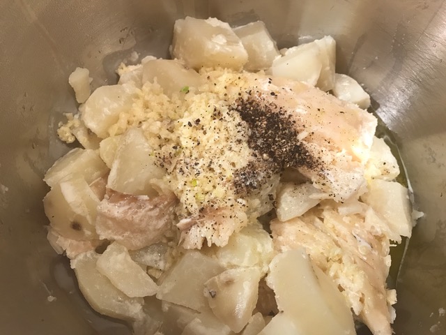 When using salt cod, you must plan ahead. A day or two of soaking with regular water changes is required to leach the salt from the fish so that it’s edible (i.e. not unbearably salty). Once the fish has been de-salted, it’s time to make brandade, which is surprisingly simple, not much more work than making mashed potatoes.