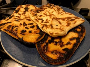 When the October recipe schedule was posted, I’ll admit that I was ambivalent about the Indian Cheese Bread (Naan au Fromage). I bought the Laughing Cow cheese, but never felt excited about preparing the recipe. Laughing Cow cheese did make me feel nostalgic. When I was growing up, this was most exotic cheese my mother bought. At that time, I think it was made in France. It was somewhat bland, but the individually wrapped wedges traveled well in my lunchbox.