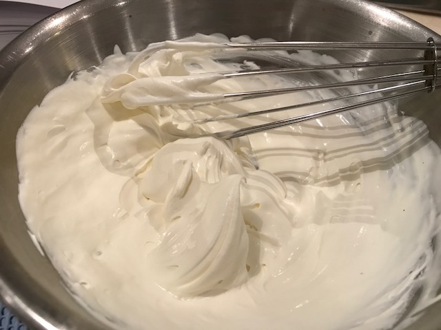 Next, we have horseradish cream. I went with the crème fraîche option. The recipe instructs you to beat the crème fraiche with a whisk until it becomes stiff. Because the crème fraiche has a lot of body to begin with, I was highly skeptical that whisking it would do anything. In fact, after whisking for a few minutes, it didn’t noticeably thicken. I kept at it, and, all of a sudden had soft peaks, similar to whipped cream. Interesting. To finish it off, horseradish, salt and lemon juice are added for a piquant topping.