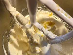 The cake is quite easy to mix together with a whisk and a rubber spatula. The resulting cake is moist and tender. I used the stand mixer to mix up the mascarpone-cream cheese frosting. I loved the tang of the frosting, and it is much less sweet than my memory of my mom’s frosting. As you can see, I’m not the most talented froster. I can’t remember the last time I made a layer cake. When I make cakes, I usually leave them unadorned or sprinkle them with powdered sugar.