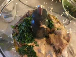 I never seem to make the same recipe twice, but this is a good one. The smoky Aleppo pepper adds a subtle undertone that complements the charred eggplant. I also liked the recommended puddle of olive oil on top. We did the same thing with the hummus from the same book. It’s an attractive and tasty technique. If you’d like to give this a try, you can find the recipe on page 64 of David Lebovitz’s My Paris Kitchen. You can see other reviews of the recipes by following the links here.