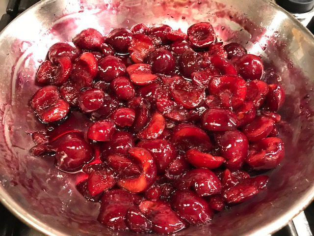 These babas were meant to be accompanied by sautéed pineapple, however, the kirsch (cherry brandy) inspired me to substitute cherries that I already had on hand. In the end, I thought the babas were interesting though unremarkable and certainly more work than they were worth, even if it had been winter.