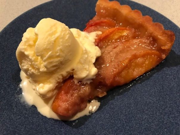 If you want to make a delicious peach tart before summer ends, here’s my latest favorite dessert concoction.