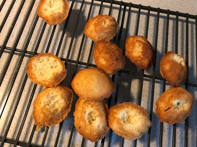 Is my browned butter too brown?The other little cakes I made were madeleines. The batter is also simple to make, but these require a special pan. I had more trouble with these. In the past, I’ve chilled the batter, but this time, the recipe just said to let it rest (at room temperature, I assumed). The molds are supposed to be filled just three-quarters. The imprints are so shallow, it’s hard to judge. I used my smallest cookie scoop, but it was a bit too much. The cakes rose and touched their neighbors. Not the way it’s supposed to work. There was some extra batter, so I chilled it overnight, and tried again.