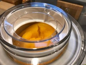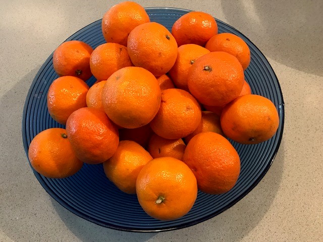 The most time-consuming (active) step in this recipe is juicing the clementines, four pounds of them. And then there was the waiting time, for the mixture to chill and then after freezing it in the ice cream maker, letting it firm up in the freezer, but that’s easy. None of that takes away from the simplicity of this sorbet.