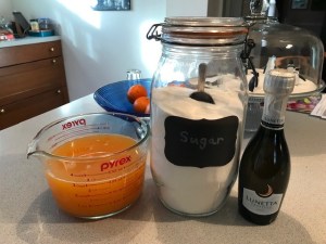 We didn’t have any leftover bubbly from New Year’s Eve, but I had splits of prosecco on hand. One little bottle was almost the right amount. I waffled between making up the difference with still white wine (flavor) or seltzer (bubbles). In the end, I chose the wine since I didn’t expect the bubbles to survive the freezing.