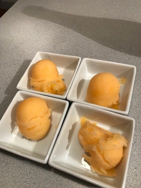 We enjoyed this refreshing dessert after going out to dinner with friends for a belated New Year’s celebratory dinner of spicy Chinese food. It was PERFECT!