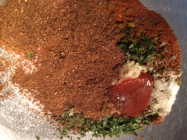 It didn’t need everything in the pantry, but the ingredient list is long indeed. Coriander seeds, fennel seeds, cumin seeds, paprika, cinnamon, allspice, and sumac from the pantry plus garlic, cilantro, and Sriracha. All these seasonings are mixed together with ground meat. I opted to use ground lamb. We had a beef-heavy week, and my palette longed for something different.