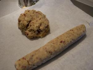 I must have made my logs thinner than intended because the recipe gives the yield as about 55 wafers and slicing at the stated ¼-inch thickness, I got about that many from each 1¼-inch diameter log.