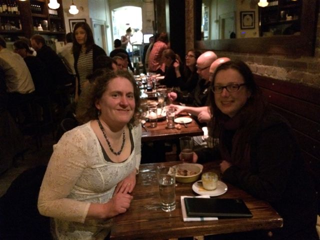 If you missed it on Facebook or Instagram, here’s a photo of Mardi and I enjoying a fantastic meal at Coppa, a tiny enoteca (wine bar) in the South End neighborhood of Boston. We had a great time meeting though we missed the rest of you. Here’s to more Dorista meetups in the future.