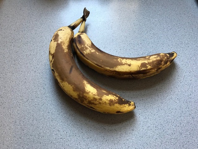 When I was ready to bake the banana Bundt, I used the first of the bunch, not the last. The other bananas are still waiting to be ready for me to eat.