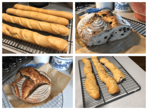 My sourdough starter, normally relegated to the refrigerator between loaves, has taken up residence on the counter. In the past week, I’ve made baguettes twice plus baked an olive-rosemary loaf. And I just pulled a country boule out of the oven.