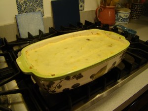 I was able to put together a delicious shepherd’s pie with ingredients we had on hand: ground beef from Chestnut Farms, root vegetables from Shared Harvest CSA, and other odds and ends in the refrigerator, taking my herbal inspiration from Simon & Garfunkel (Parsley, Sage, Rosemary, & Thyme). I diced and roasted the vegetables the night before to make this easy to throw together after work, so it came together quickly.