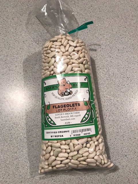 First, an opportunity to buy some freshly dried beans arose. Baer‘s Best is a local company that sells New England grown dried beans. I bought a pound of flageolet, a slender ivory bean that is an immature kidney bean.